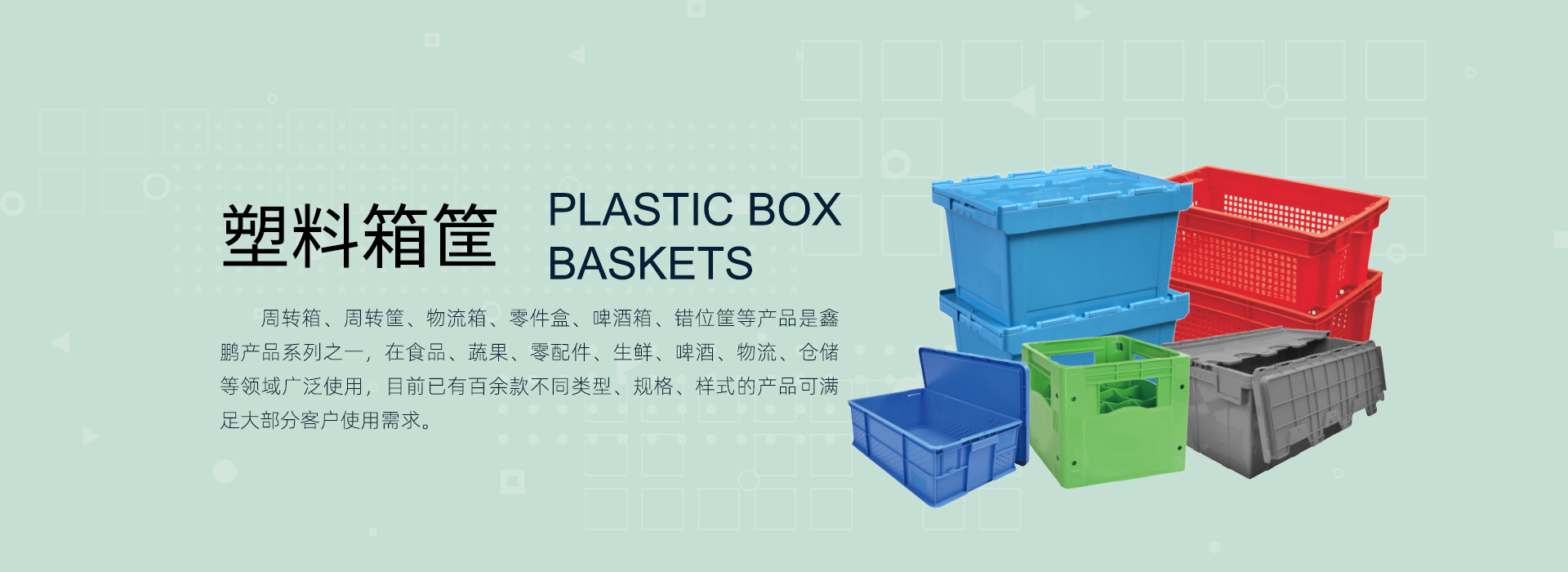 上海鑫鵬塑料制品有限公司作為集團(tuán)最早成立的企業(yè),是上海市高新技術(shù)企業(yè),上海市專精特新企業(yè)、上海市小巨人先進(jìn)企業(yè)。公司配有專業(yè)的高分子材料和產(chǎn)品研發(fā)技術(shù)團(tuán)隊,擁有7項發(fā)明專利,66項實用新型專利;完善的ISO9001質(zhì)量管理體系、ISO14001環(huán)境管理體系及ISO45001職業(yè)健康與安全管理體系為公司及客戶提供了有力的質(zhì)量保證與安全保障。30多年行業(yè)積累,現(xiàn)集團(tuán)公司整體擁有90多臺160噸-4000噸注塑設(shè)備,建有模具生產(chǎn)制造中心、原材料和產(chǎn)品測試中心,配備全套先進(jìn)的產(chǎn)品檢驗儀器及各種輔助設(shè)備。年產(chǎn)塑料制品1800萬件,改性塑料新材料15萬噸。我們的產(chǎn)品廣泛應(yīng)用于食品飲料、物流倉儲、生鮮蔬果、煙酒、電商、化工、醫(yī)藥、紙業(yè)、汽車、環(huán)衛(wèi)等行業(yè)領(lǐng)域,可根據(jù)不同行業(yè)客戶應(yīng)用場景定制化產(chǎn)品。